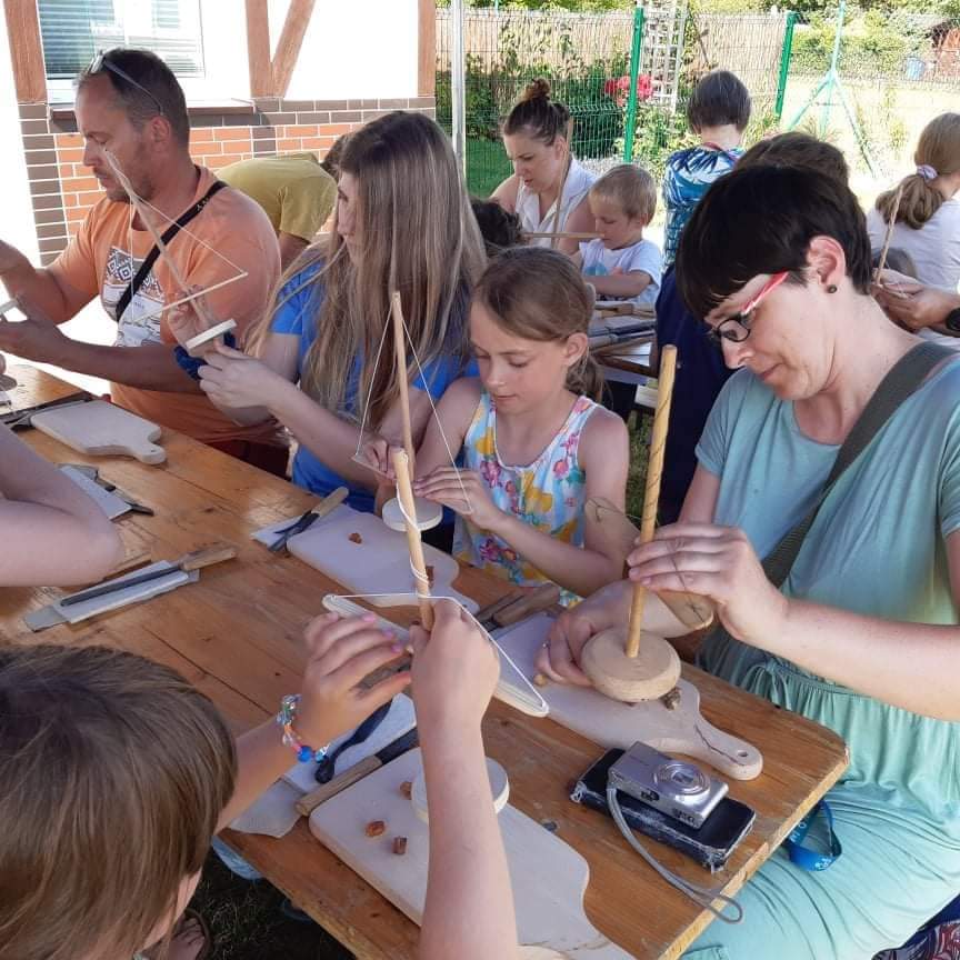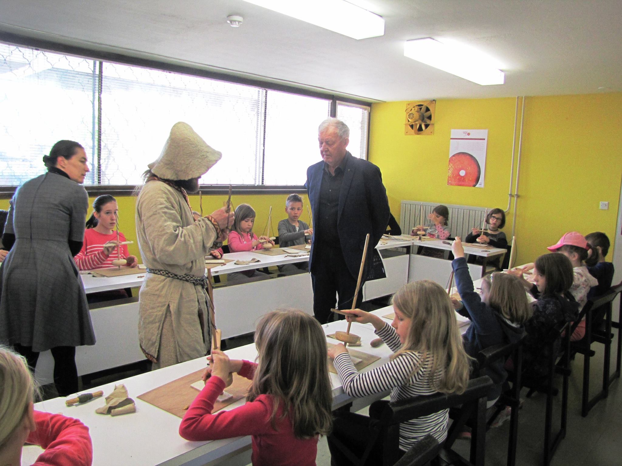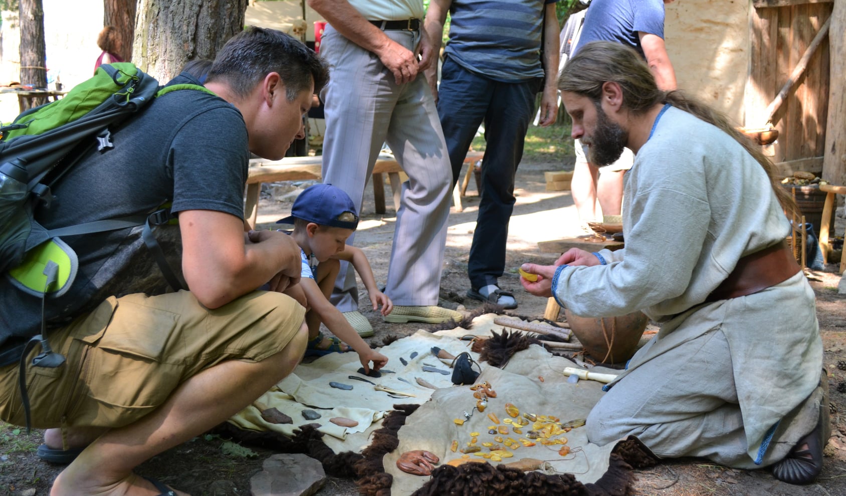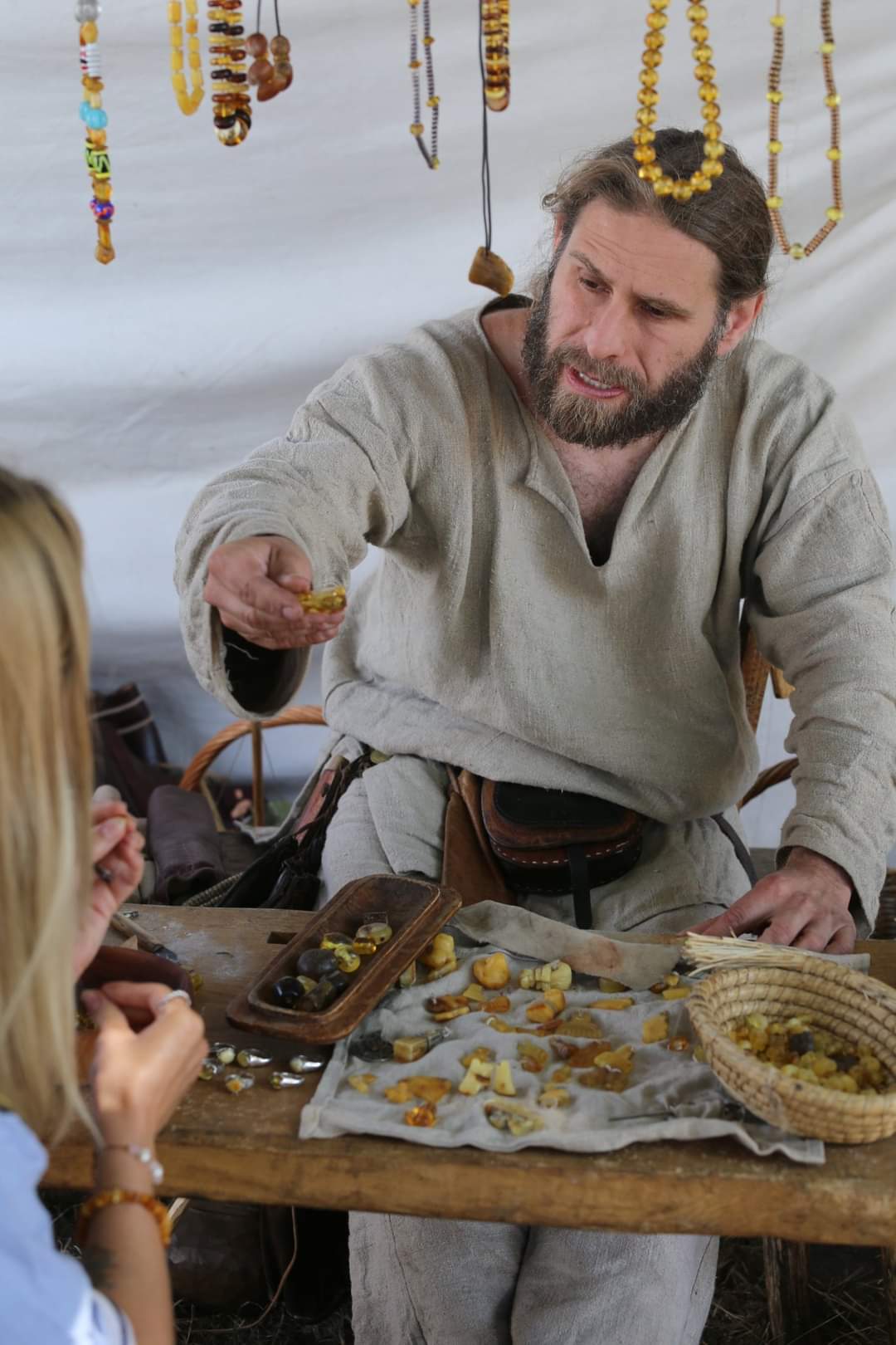 W trakcie pokazu widzowie mogą próbować wiercić bursztyn lub opiłować narzędziami wzorowanymi na zamówionym okresie historycznym.