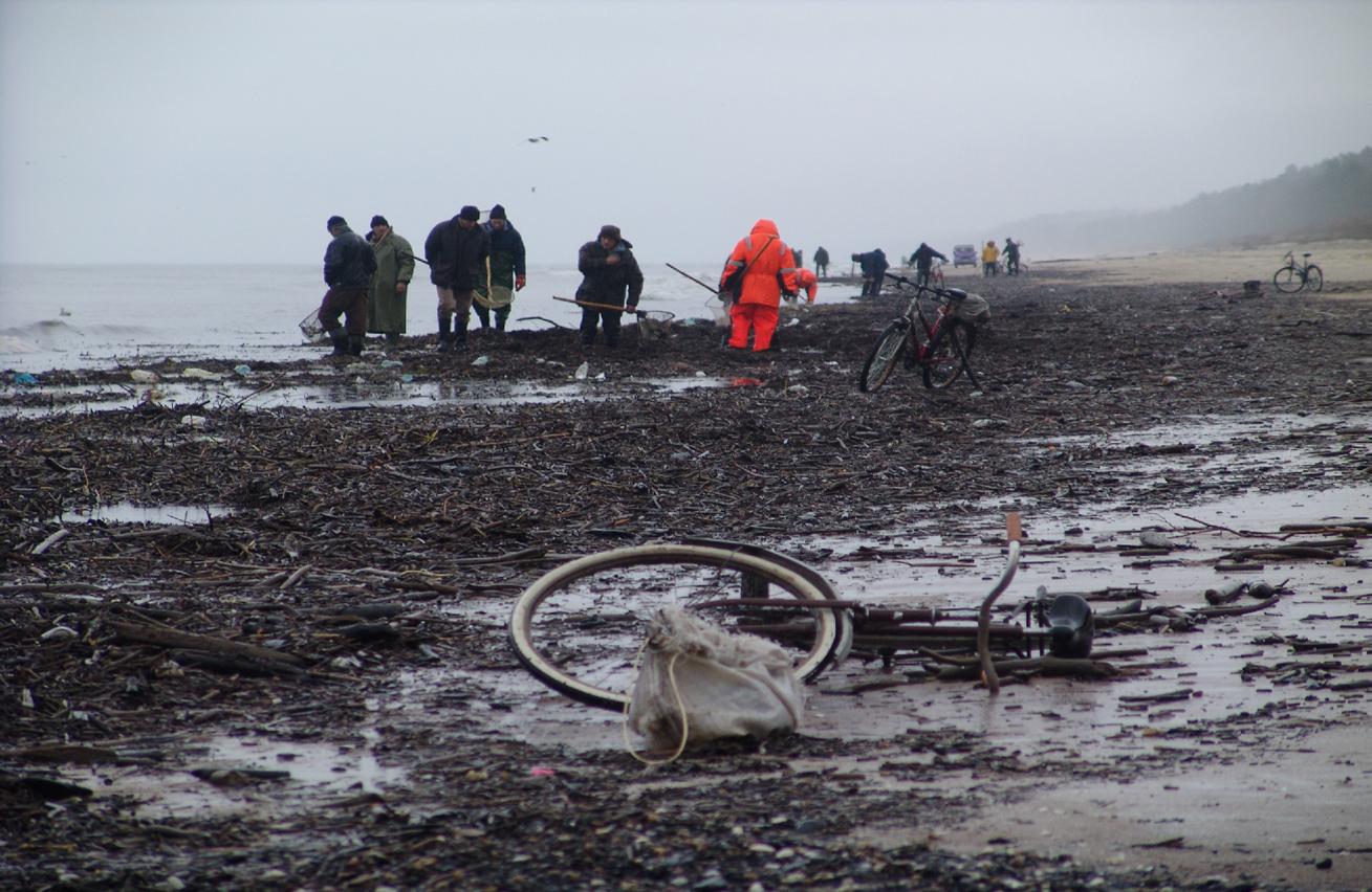 [10] stare śmieci – już podczas poprzedniego sztormu były wyrzucane, a charakteryzować je mogą np. but damski na obcasie o kolorze różowym i kurtka fioletowa ortalionowa, natomiast nowe śmieci charakteryzują inne odpady typu np. kalosz czerwony i fragmenty potłuczonej plastikowej boi pomarańczowej.