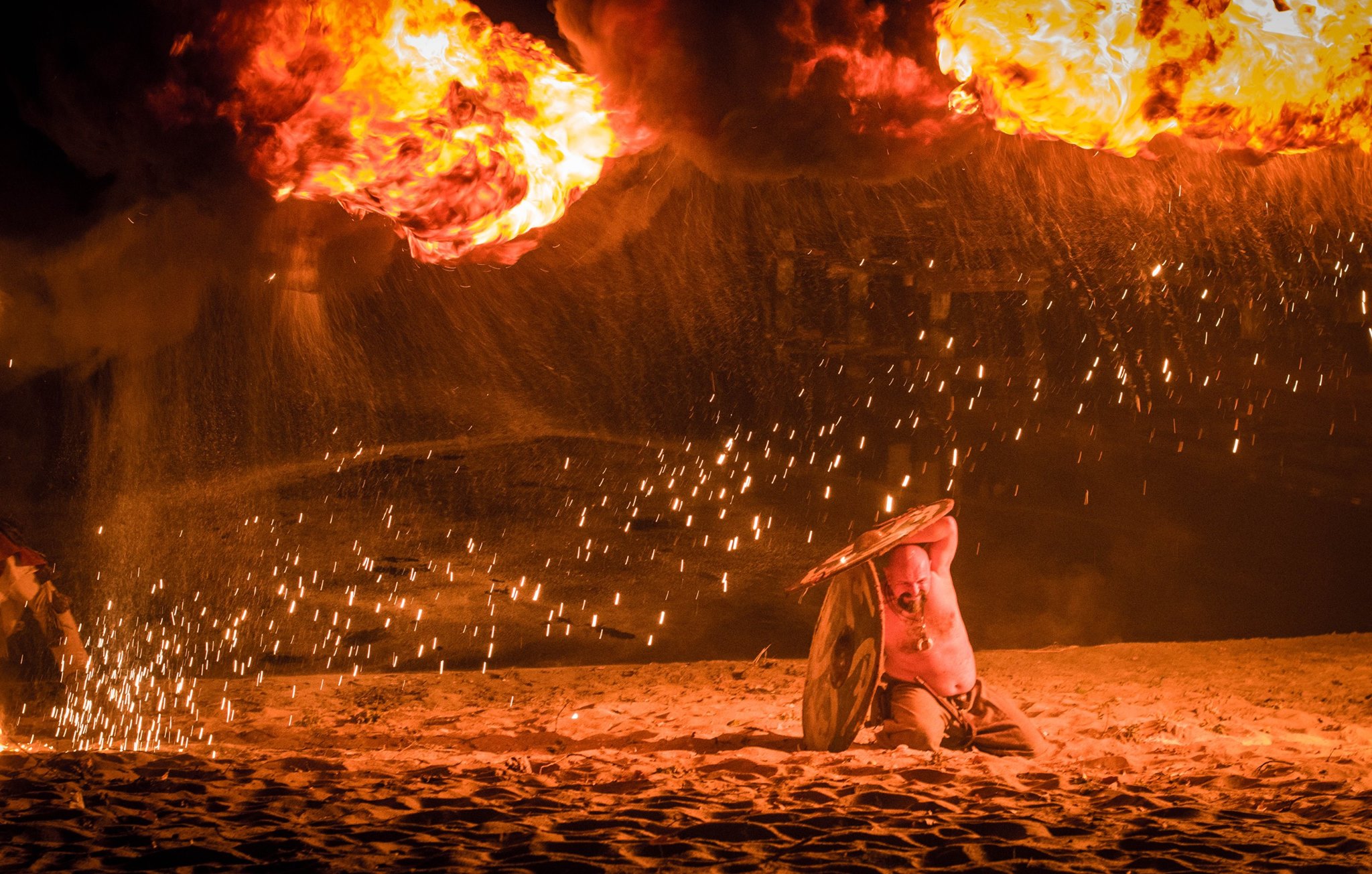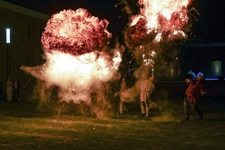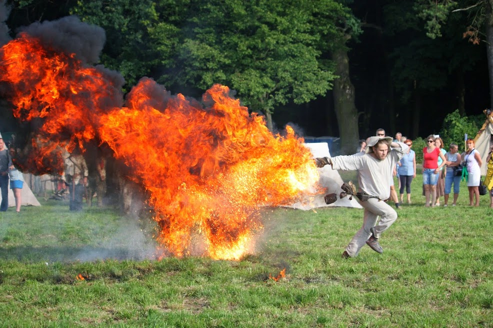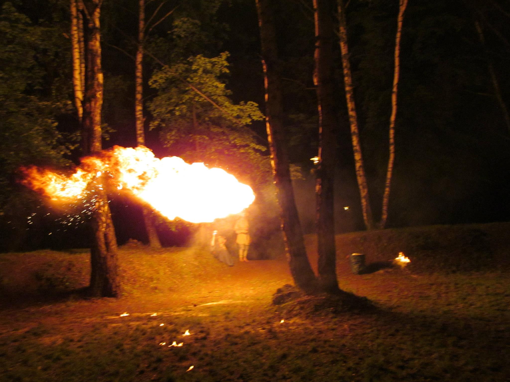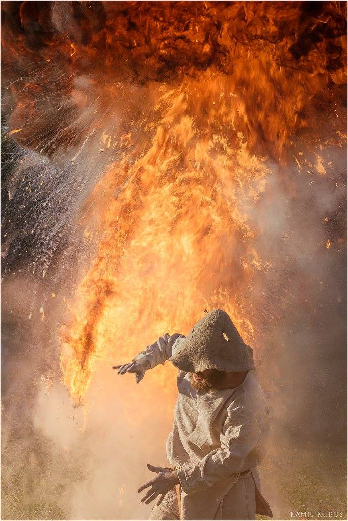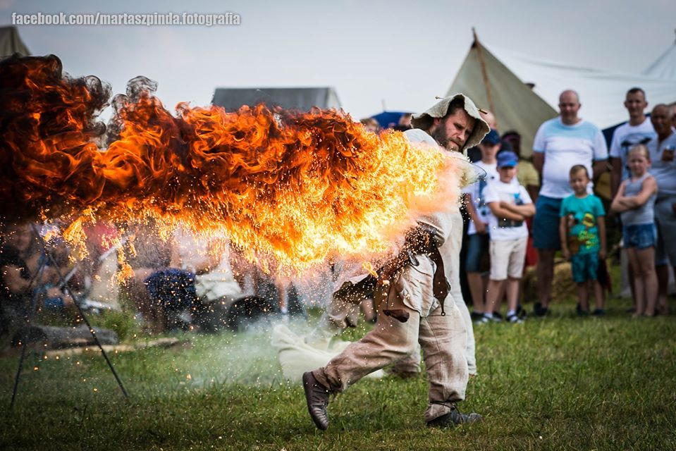 Czterometrowa kula ognia przecina powietrze, a po chwili kolejna. A to tylko dwie duże garści białego pyłu bursztynowego ciśnięte przez płonącą pochodnię.